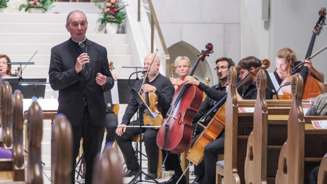 A szentmise után a Mendelssohn Kamarazenekar és a Szent Mihály Kamarakórus közreműködésével ünnepi hangverseny következett, Kováts Péter vezényletével. A köszöntőjében érsek atya úgy fogalmazott: amikor valakinek a születésnapját ünnepeljük, szeretnénk azt időtlenné tenni – a művészet, különösen a zene pedig képes a misztériumra rácsodálkoztatni és elvezetni bennünket Istenhez.